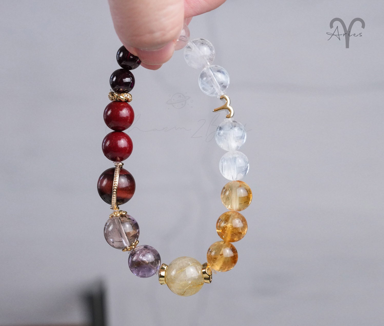 Aries Horoscope Lucky Guardian Crystal Natural Gemstone Bracelet Handmade Original Design on Elastic Band