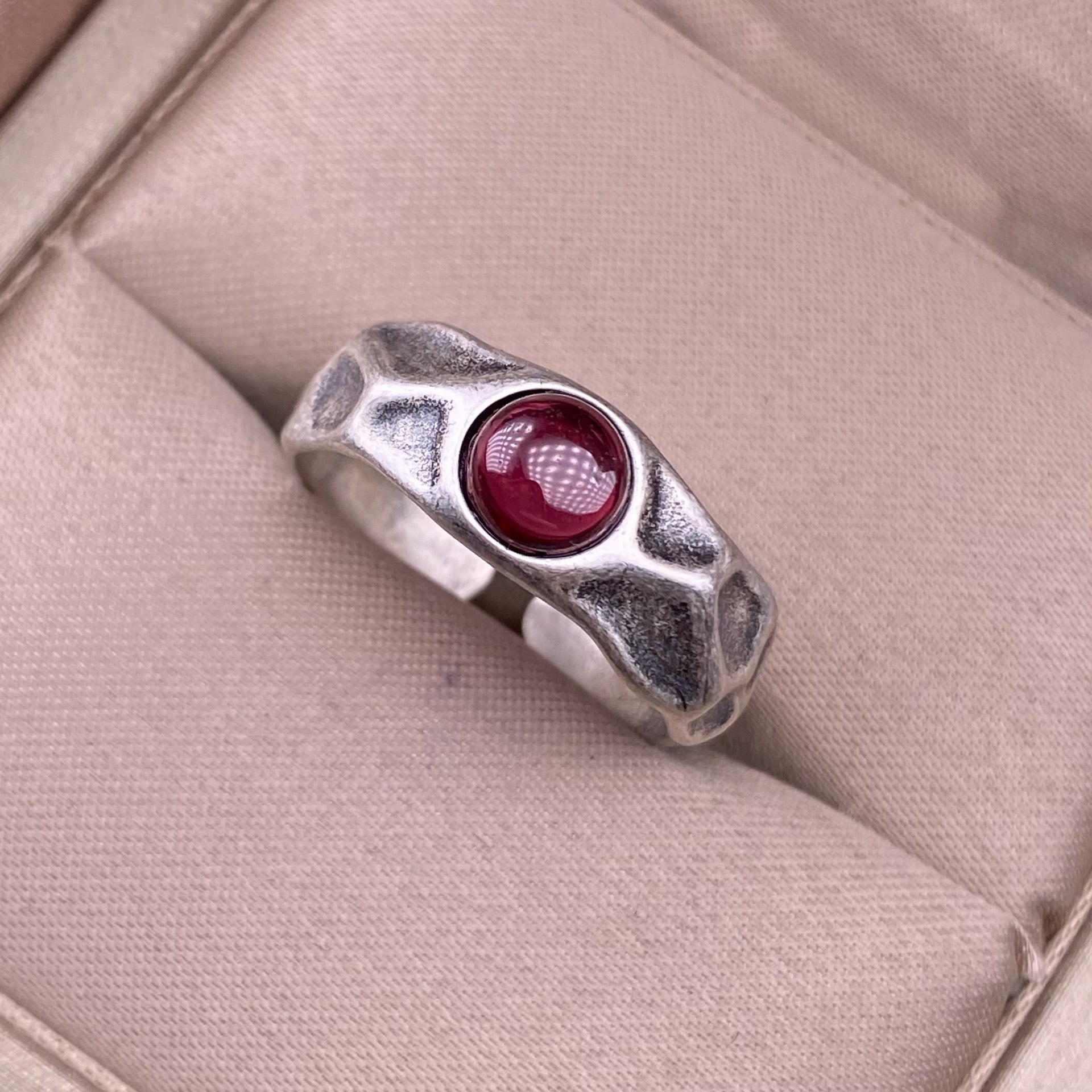 Energy Guard - Kyanite / Moonstone / Garnet Vintage Silver Ring